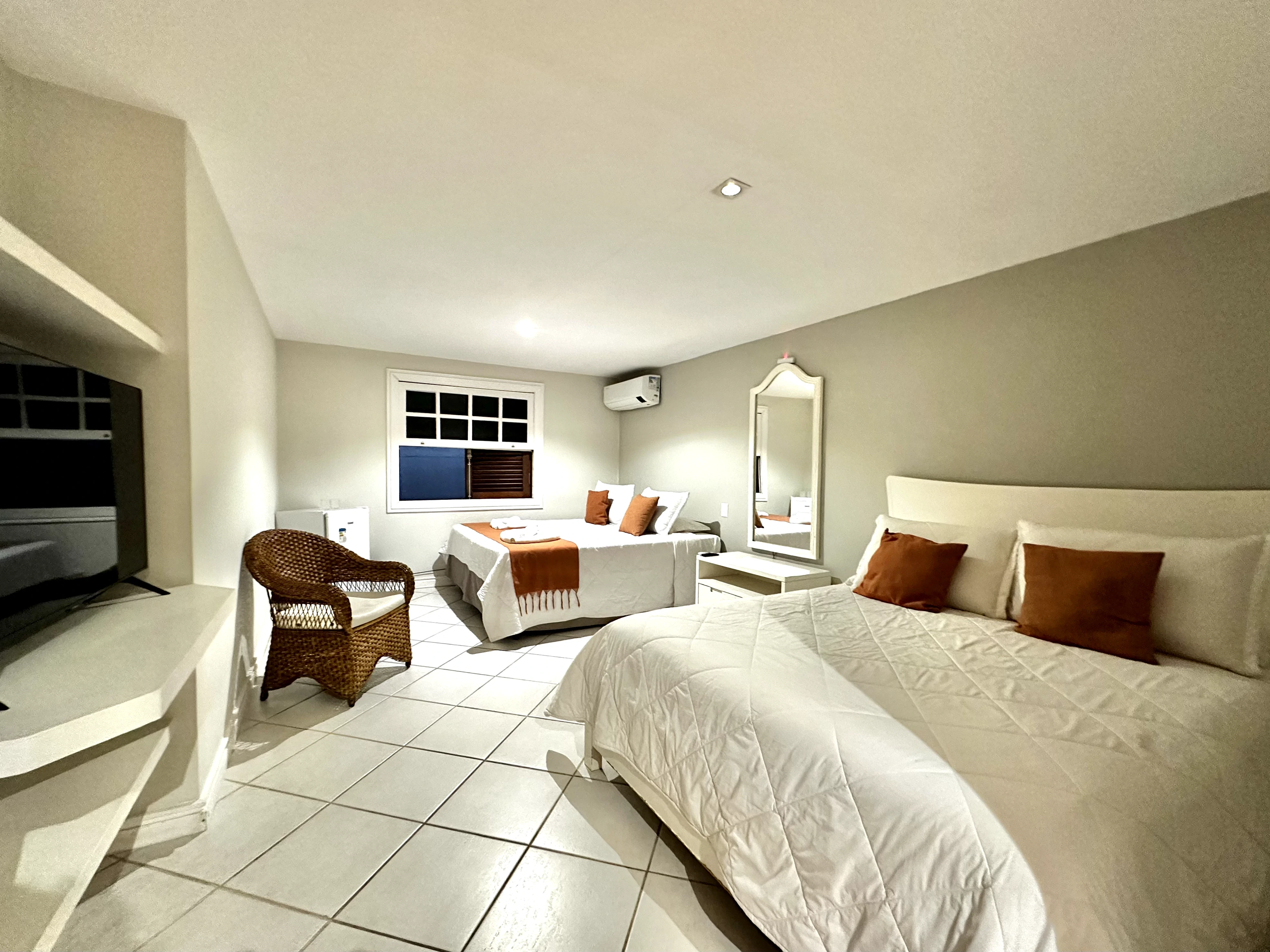 Suíte 4: Quádrupla sem Hidro foi pensada para receber até 4 adultos com conforto, praticidade e uma experiência acolhedora no Luna Hotel Boutique.